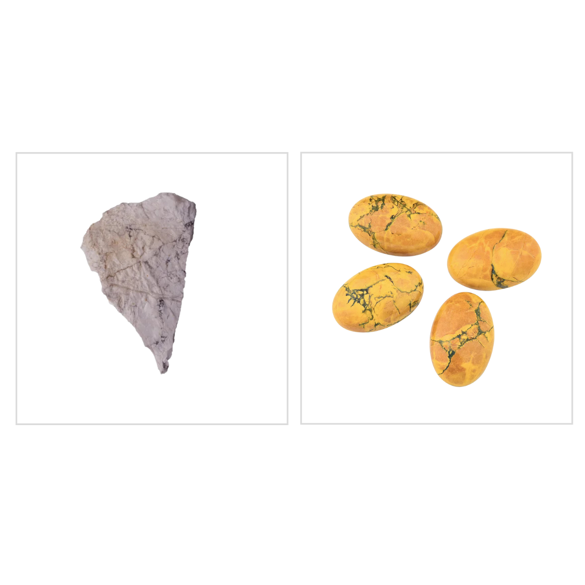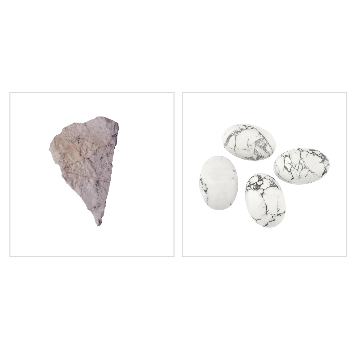 A Howlita natural é branca e devido sua porosidade é facilmente tingida em amarelo e salmão.