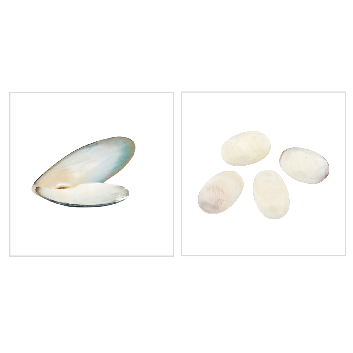 Diretamente do mar, a madrepérola natural é uma camada interna das conchas.