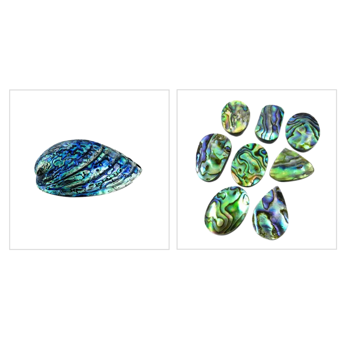 A concha de Abalone é uma matéria orgânica original dos mares, principalmente, da Nova Zelândia. Sua beleza e coloração única, possui a mesma composição que a madrepérola.