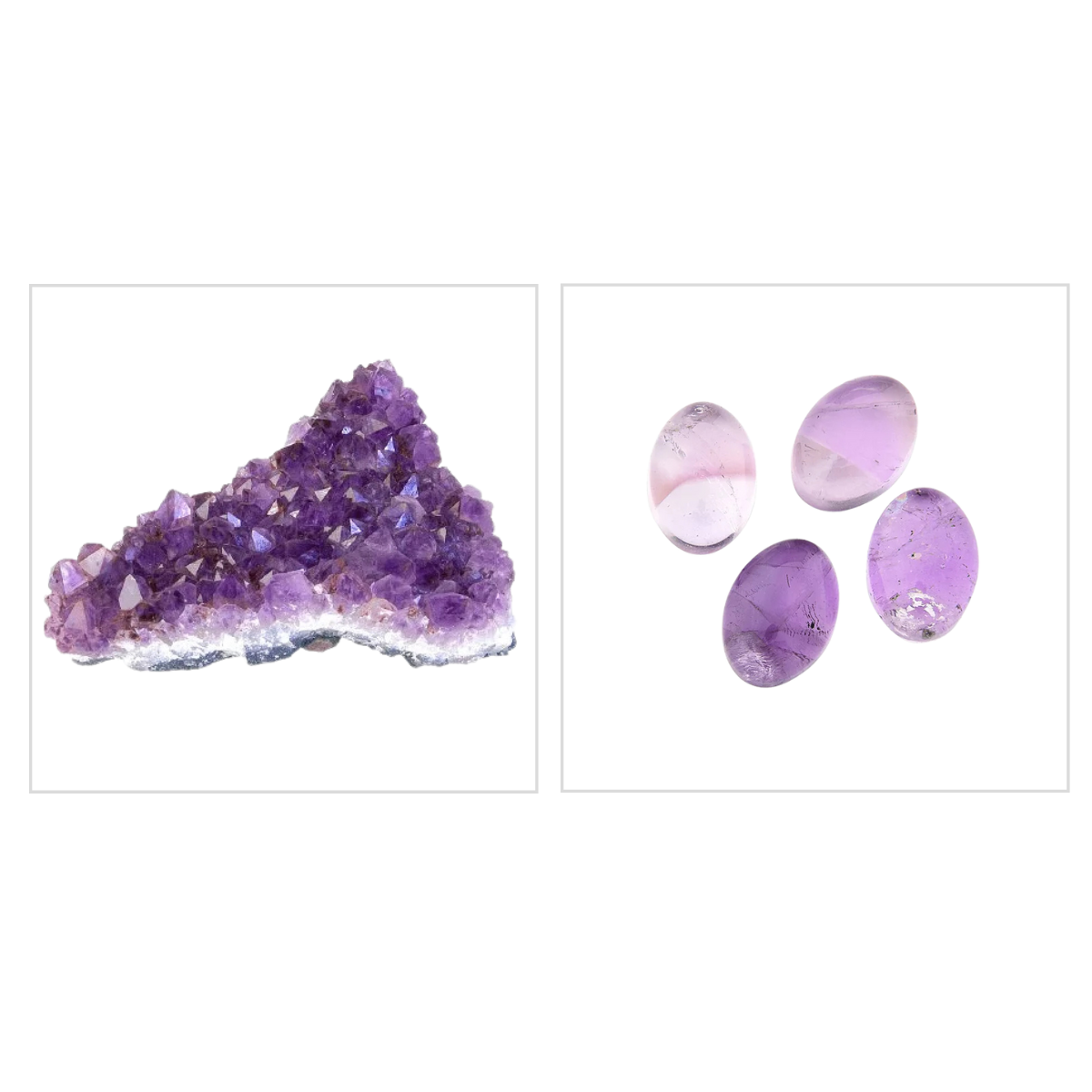 Pedra de muito simbolismo místico, a Ametista possui cor violeta, levemente transparente e de rara beleza.