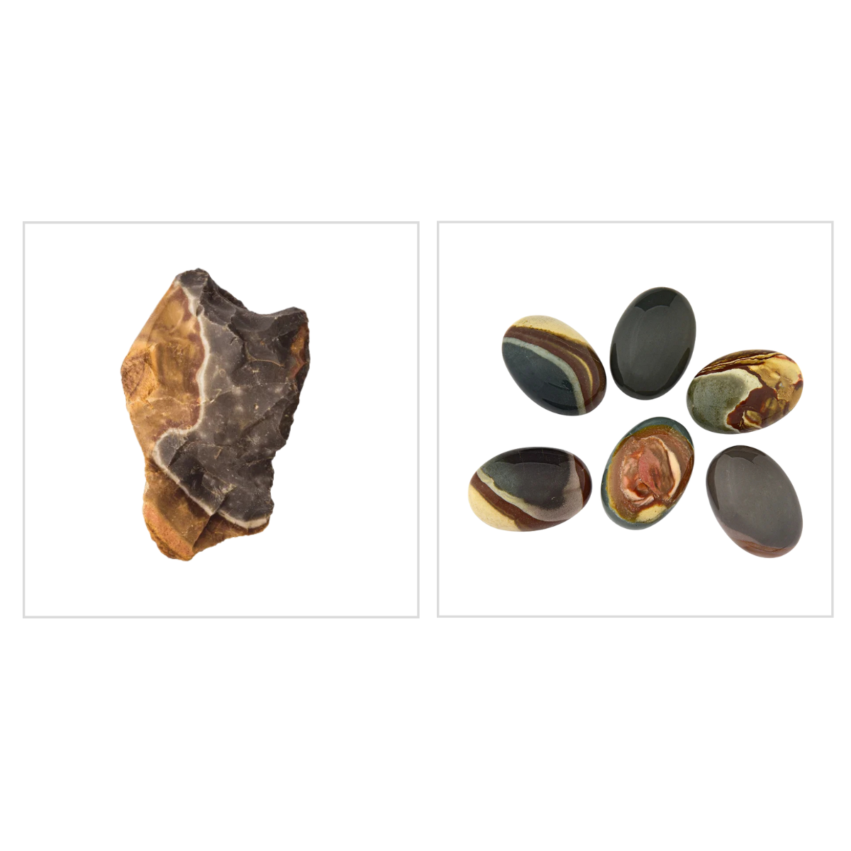 Essa pedra está associada ao alívio do estresse e a cura. Sua superfície estampada torna cada peça exclusiva.