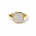 A drusa, com seu efeito cintilante natural, valoriza a joia e transforma o anel em um ponto de destaque no look, seja usado sozinho ou em composições.