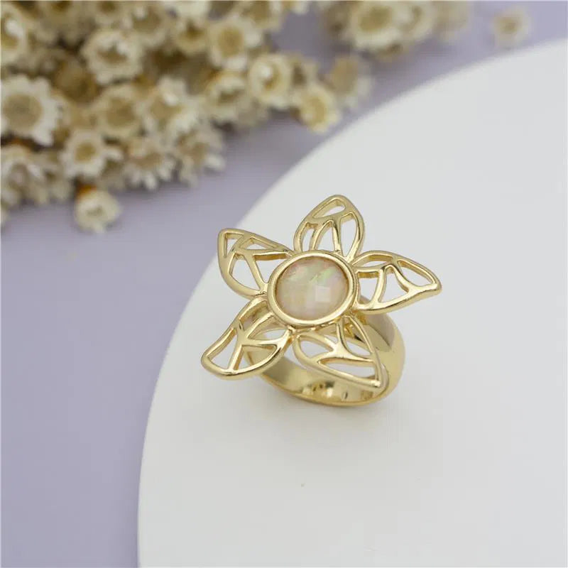 • Anel com design em formato de flor• Tamanho da pedra: pedra redonda facetada 8mm• Folheado a ouro• Peça hipoalergênica / sem níquel• Garantia de 1 ano no banho