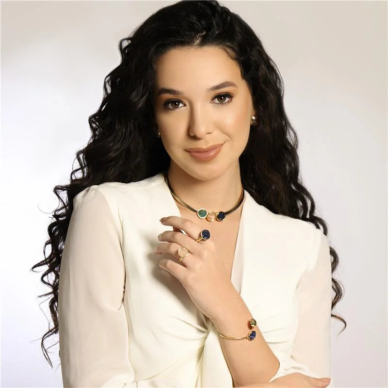 Da Coleção Lúmen / Fragmentos, o Conjunto Lúmen Aro Dourado é a união perfeita entre delicadeza e sofisticação natural.As pedras fragmentadas, com suas formas e cores únicas, tornam cada peça exclusiva, enquanto o aro dourado realça o brilho e o design artesanal característico da coleção.O...