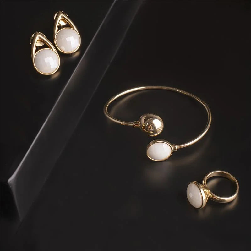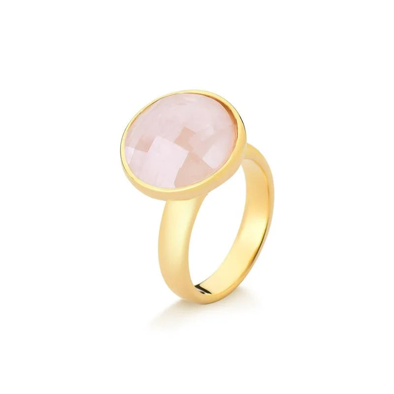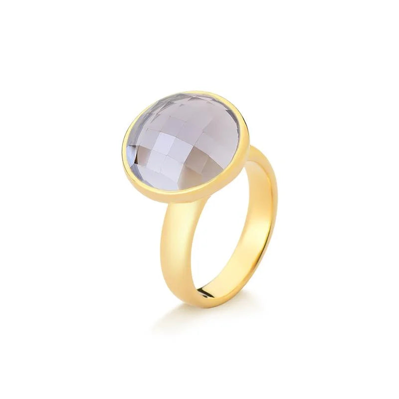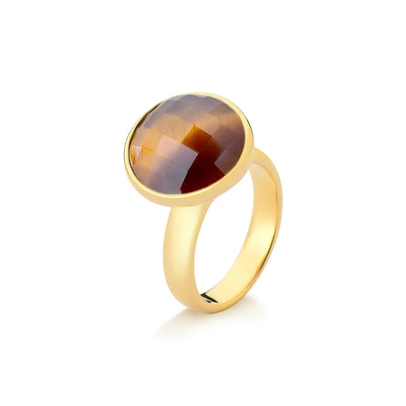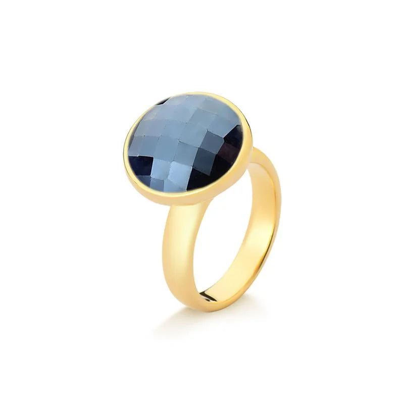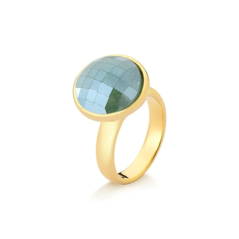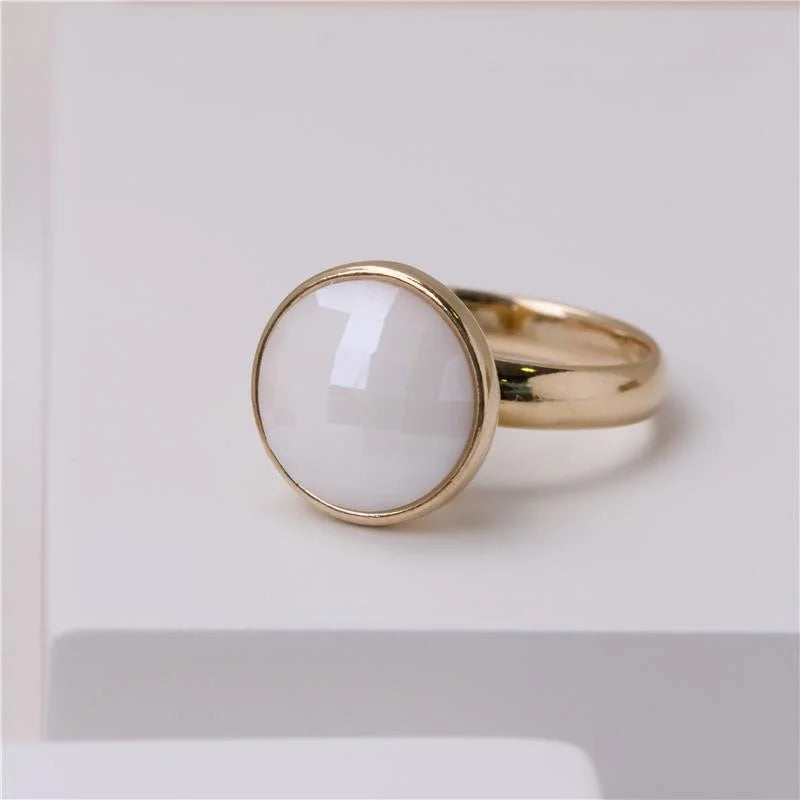 O Anel Facetado Perolado Dourado une o brilho delicado do efeito perolado à elegância atemporal das formas clássicas.Com pedra natural facetada no formato redondo de 12mm, a peça reflete a luz com suavidade e requinte, revelando um charme discreto que combina com qualquer ocasião.Seu design sofisticado e acabamento folheado a ouro fazem deste anel uma joia versátil e indispensável na composição de um visual refinado e moderno. Detalhes do produto:• Pedra natural facetada redonda 12mm com efeito perolado• Folheado a ouro• Peça antialérgica / hipoalergênica• Garantia de 1 ano no banho Coleção Facetada Perolada Joias que irradiam luminosidade e elegância natural, perfeitas...