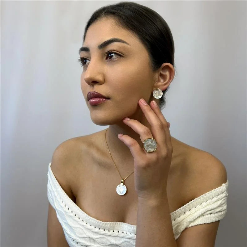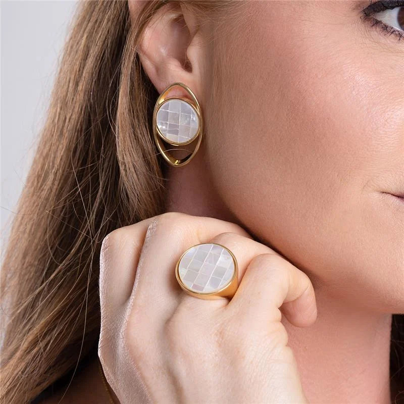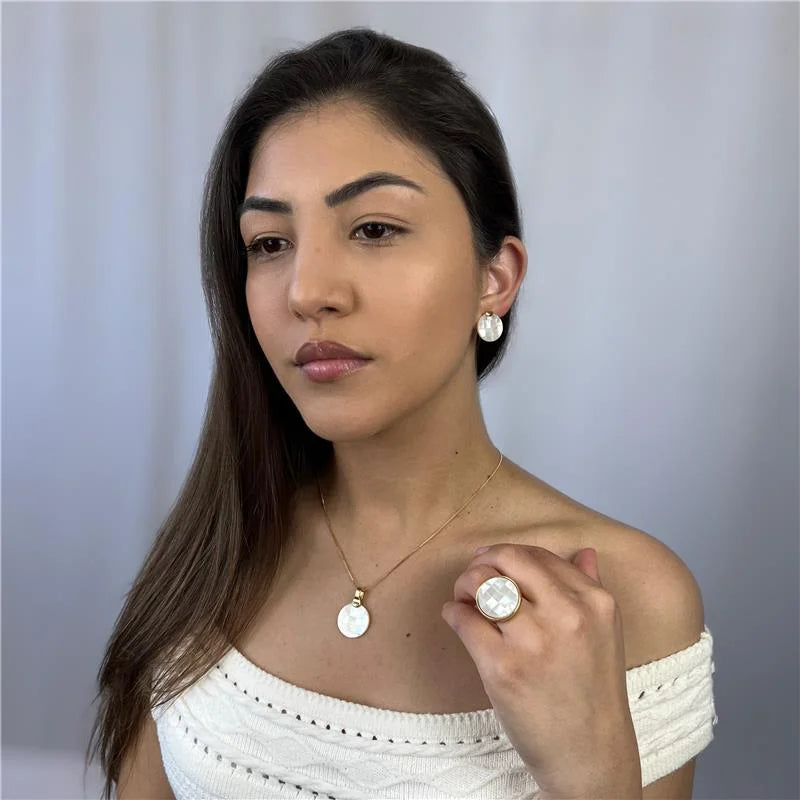 Da Coleção Mosaico, o Brinco Encanto Madrepérola Dourado é a expressão da delicadeza e luminosidade natural.Com pedra no formato redondo, a peça destaca o brilho suave e o reflexo perolado característico da madrepérola, criando um visual elegante e atemporal.O banho dourado realça a beleza...