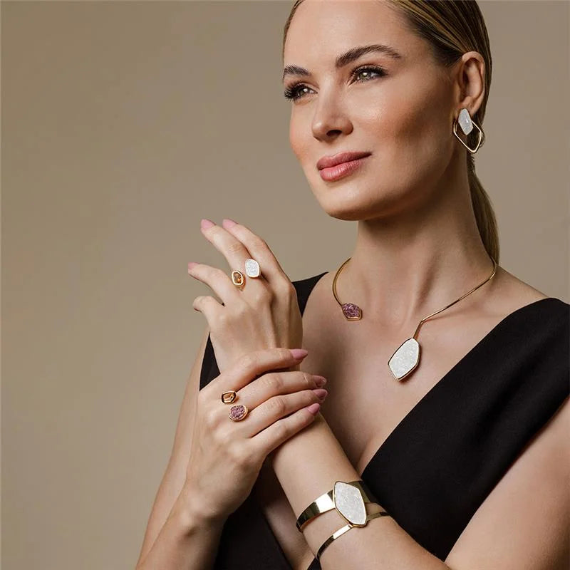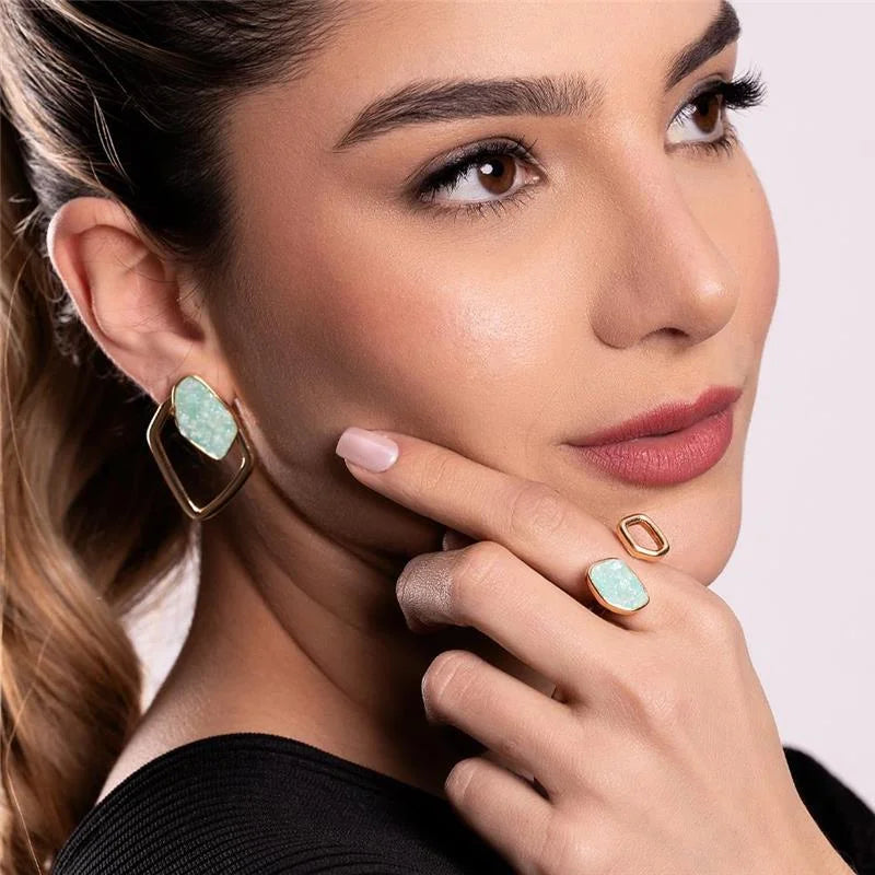 Da Coleção Lúmen / Fragmentos, o Conjunto Lúmen Aro Dourado é a união perfeita entre delicadeza e sofisticação natural.As pedras fragmentadas, com suas formas e cores únicas, tornam cada peça exclusiva, enquanto o aro dourado realça o brilho e o design artesanal característico da coleção.O...
