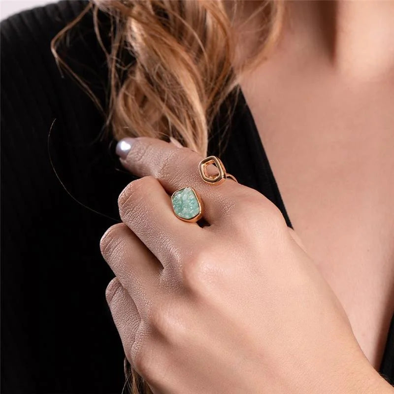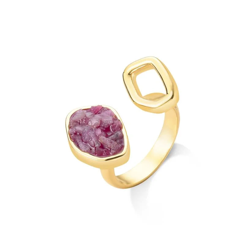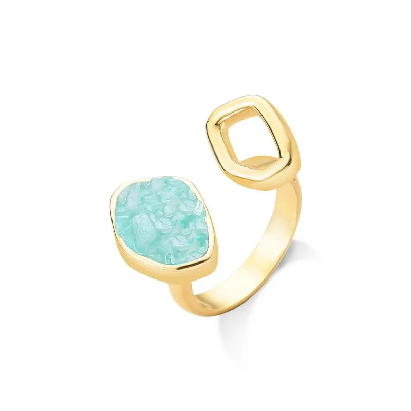 Anel de regulagem com detalhes em pedra fragmentadas e detalhe dourado.