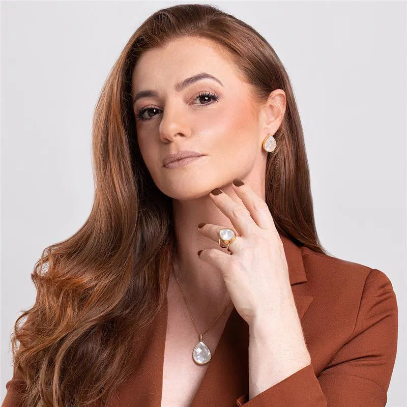 Anel dourado com design elegante e acabamento em madre mosaico, trazendo sofisticação e brilho na medida certa. A pedra em formato de gota valoriza a peça com um visual marcante e atemporal, ideal para quem ama joias com presença e delicadeza ao mesmo tempo. O sistema de regulagem permite ajuste fácil e confortável, garantindo versatilidade para diferentes tamanhos de dedo e uso no dia a dia ou em ocasiões especiais. Detalhes do produto:• Pedra: madre mosaico em formato de gota 13x18 mm• Anel com regulagem fácil• Ajustável do número 14 ao 24• Folheado a ouro• Peça antialérgica / sem níquel•...