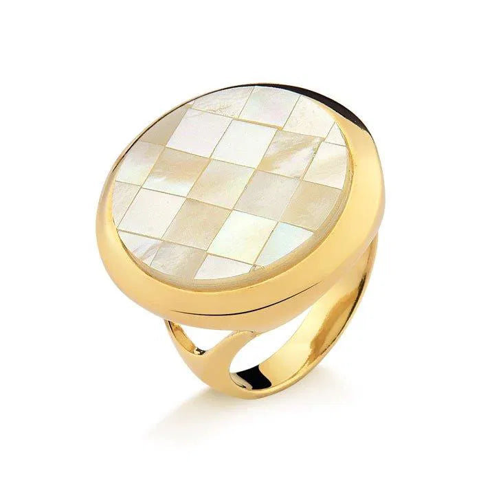 ANEL PEDRA REDONDA EM MADREPÉROLA DETALHE DOURADO MAIOR