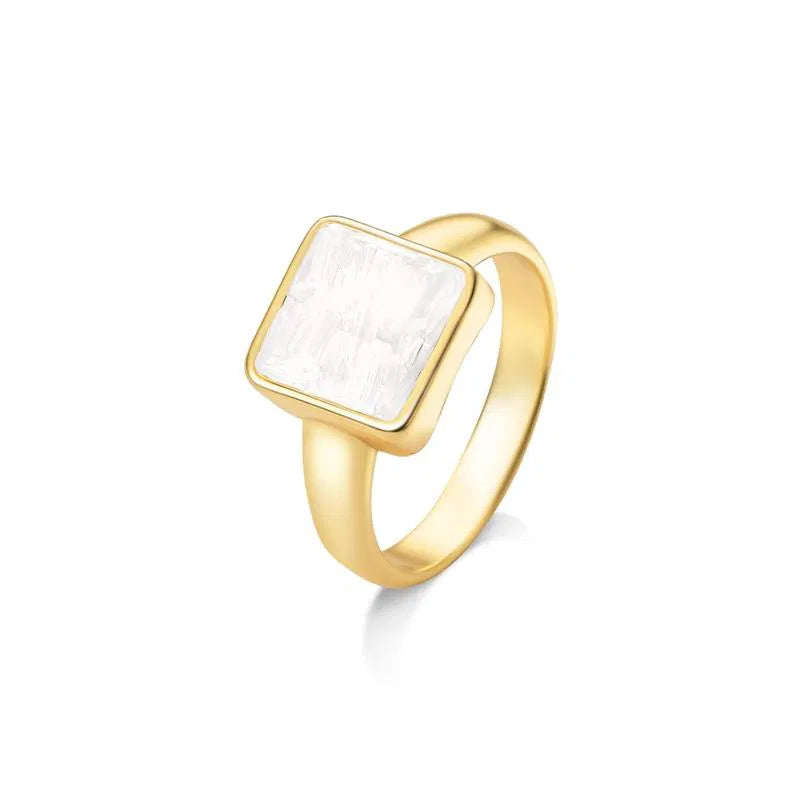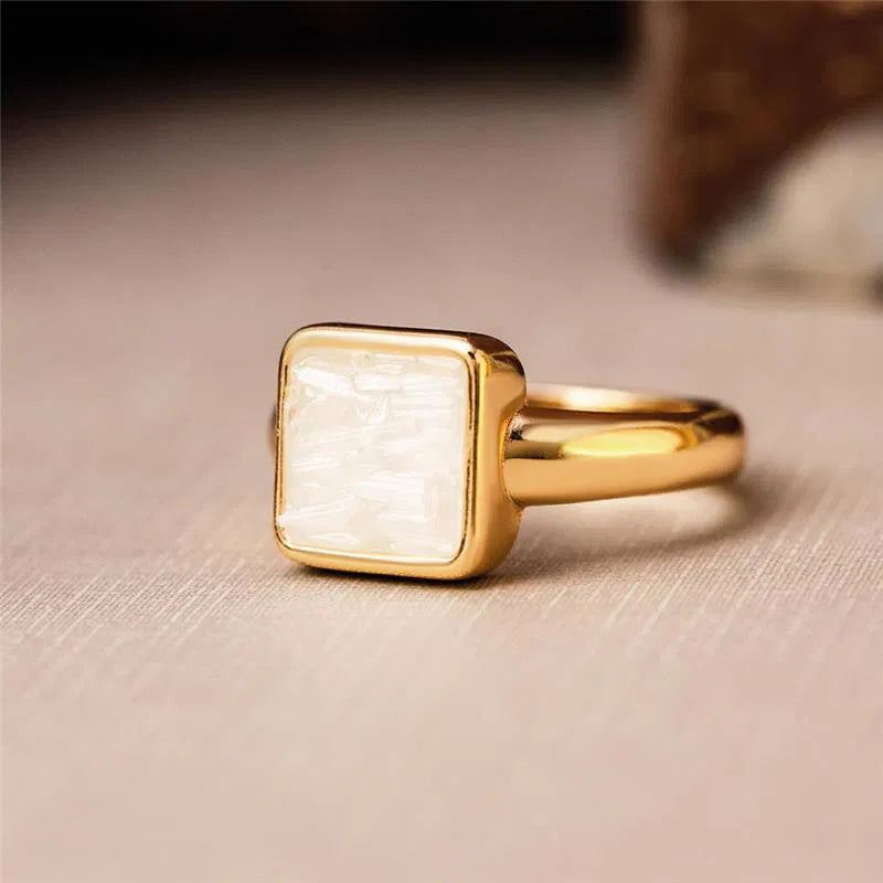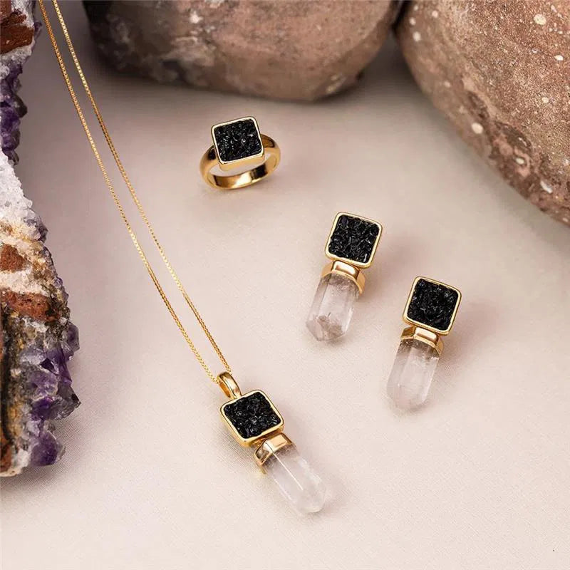 Detalhes do produto:• Pedras naturais fragmentadas• Formato quadrado moderno• Design exclusivo – nenhuma peça é igual à outra• Acabamento dourado hipoalergênico (sem níquel)• 1 ano de garantia
