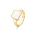 Detalhes do produto: • Anel regulável • Detalhes em pedras fragmentadas • Tamanho da pedra: cabochão formato folha 14x21mm • Folheado a ouro • Peça hipoalergênica / sem níquel • Garantia de 1 ano no banho Anel regulável com detalhe em pedras fragmentadas, que...