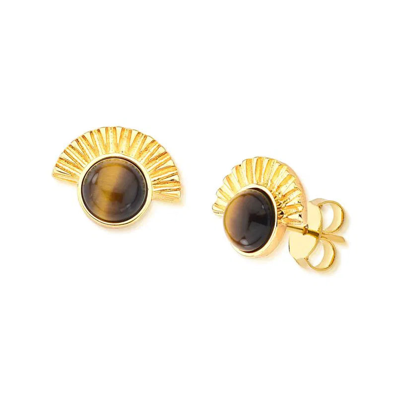O Brinco Summer Clássico Dourado combina o charme do clássico com um toque moderno e sofisticado.Com pedra cabochão redonda de 8mm, é envolvido por metais com textura, criando um design elegante e versátil perfeito para iluminar o visual em qualquer ocasião.