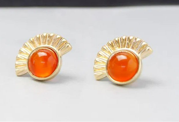 Detalhes do produto:• Altura total do brinco: 1,4cm• Pedra cabochão redonda 8mm• Banho de ouro• Peça hipoalergênica• Garantia de 1 ano no banho