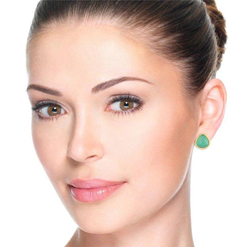 Brinco delicado em formato de gota, na pedra Cabochão.