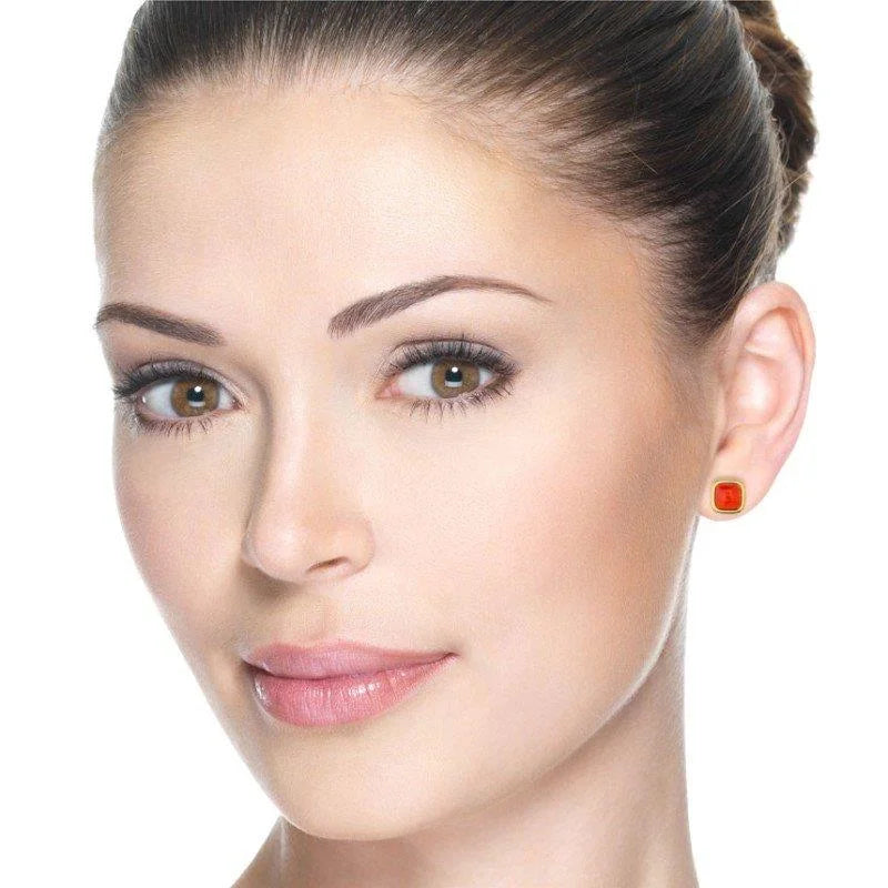 Detalhes do produto:• Pedra cabochão quadrada 6x6mm• Altura total: 1,0cm• Folheado a ouro• Peça antialérgica / hipoalergênica• Garantia de 1 ano no banho