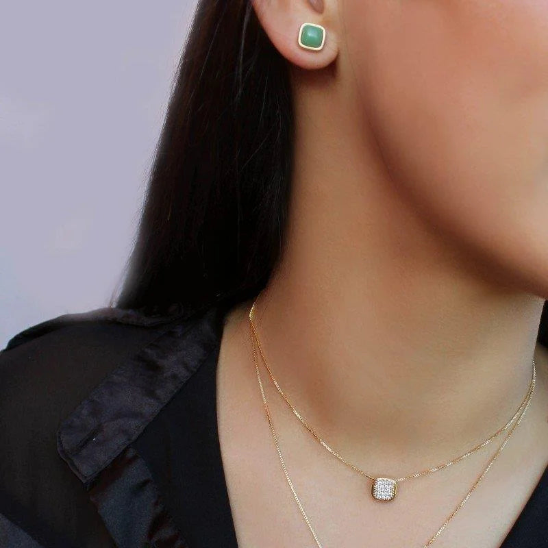 O Brinco Pedra Quadrada Minimalista traz o equilíbrio perfeito entre sofisticação e simplicidade.Com pedra cabochão no formato quadrado de 6x6mm, é uma peça elegante e atemporal, ideal para quem aprecia detalhes sutis, mas cheios de personalidade.Seu design compacto e o acabamento folheado a ouro proporcionam um toque moderno e delicado, perfeito para uso diário ou composições com outros brincos.