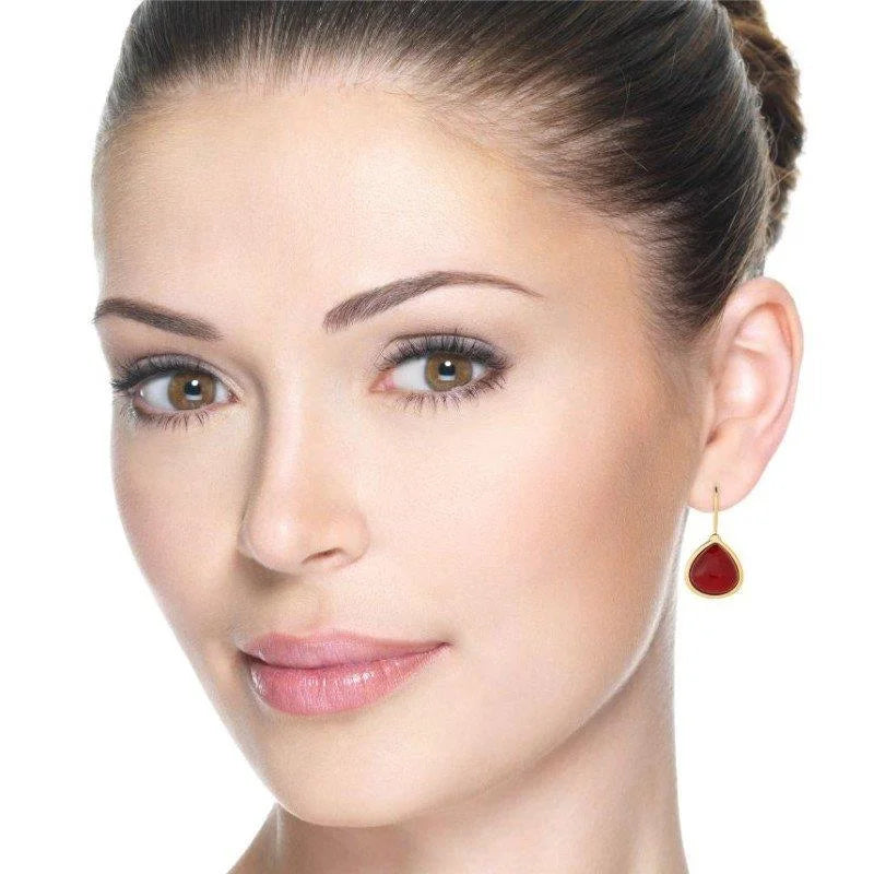 Detalhes do produto:• Formato da pedra: gota cabochão• Sistema de fecho: anzol• Folheado a ouro• Peça antialérgica / hipoalergênica• Garantia de 1 ano no banho