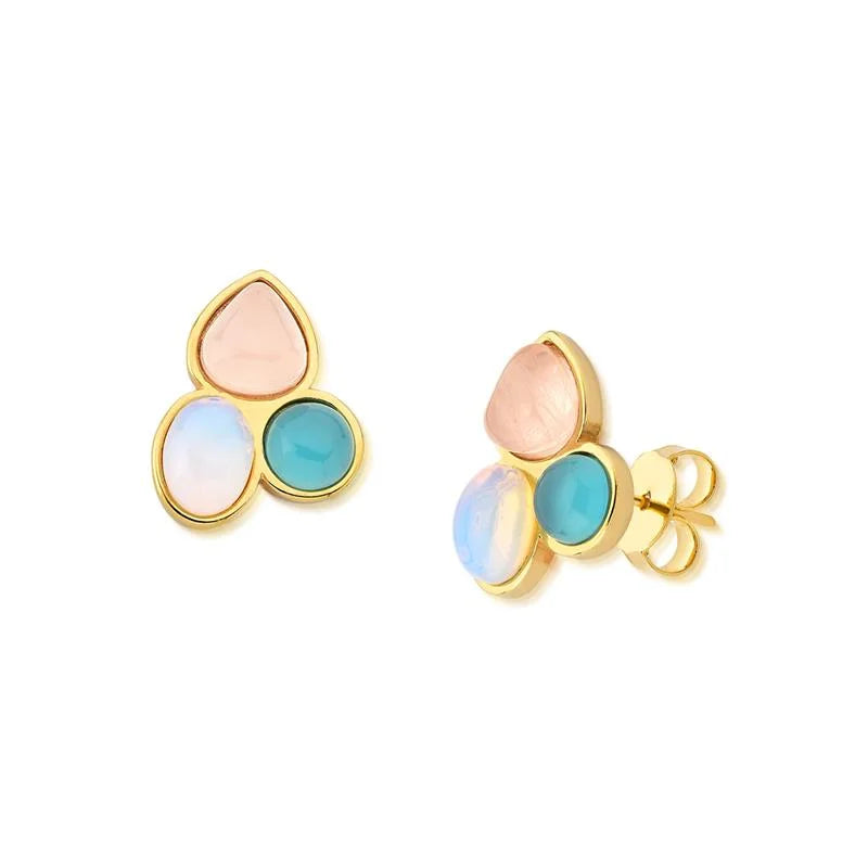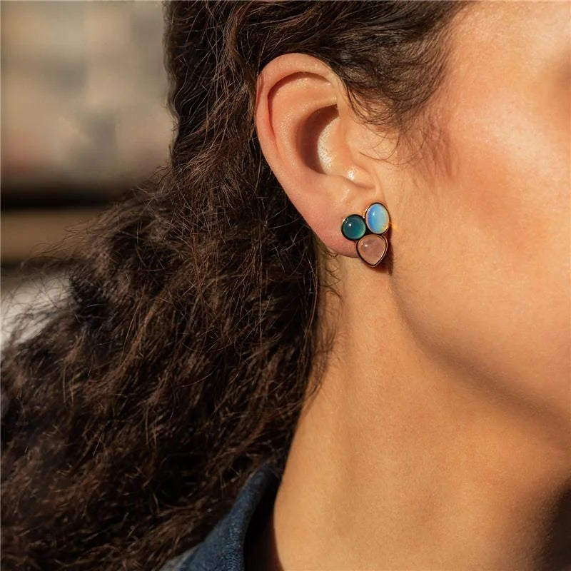 Detalhes do produto:• Três pedras cabochão: oval 8x6mm, redonda 6,5mm, gota 8,65mm• Altura total: 2cm• Peça antialérgica/hipoalergênica• Garantia de 1 ano no banho