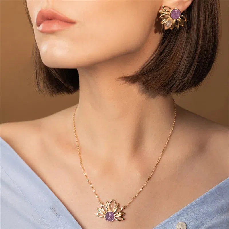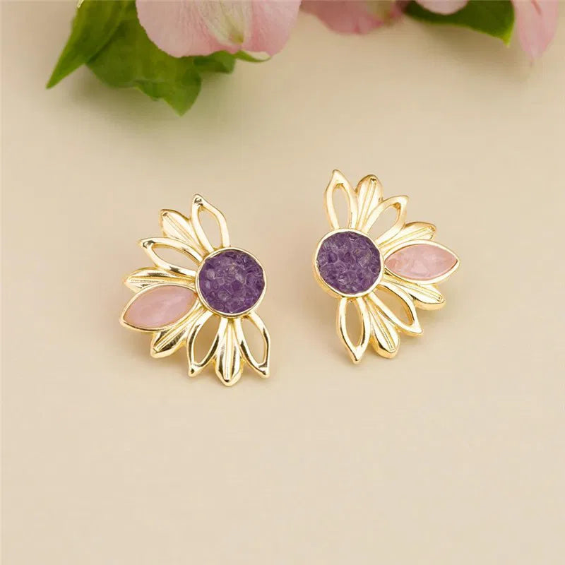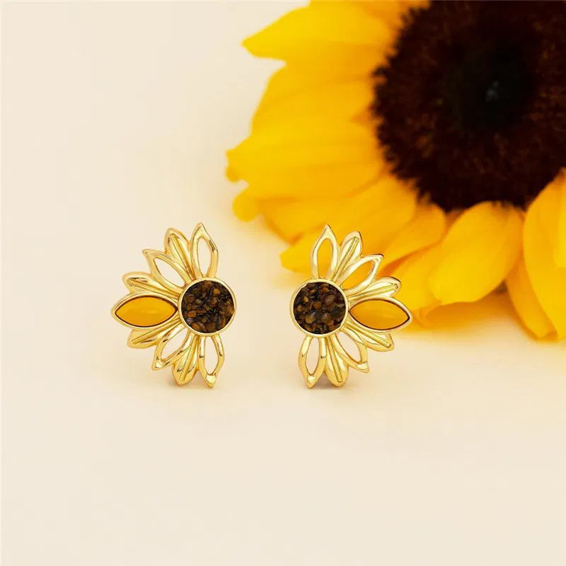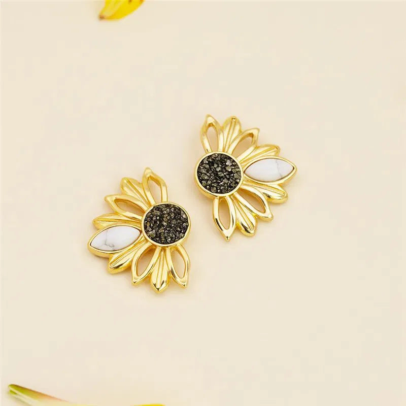 BRINCO GIRASSOL DOURADO COM DETALHES EM PEDRA NATURAL FRAGMENTADA