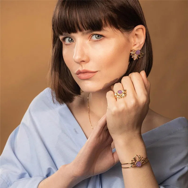 O anel Coração é uma peça que une brilho, elegância e exclusividade. Sua pedra de geodo natural em formato de coração traz textura, luz e personalidade, cada anel é único, já que as formações naturais variam em cor, brilho e desenho. Uma joia perfeita para...