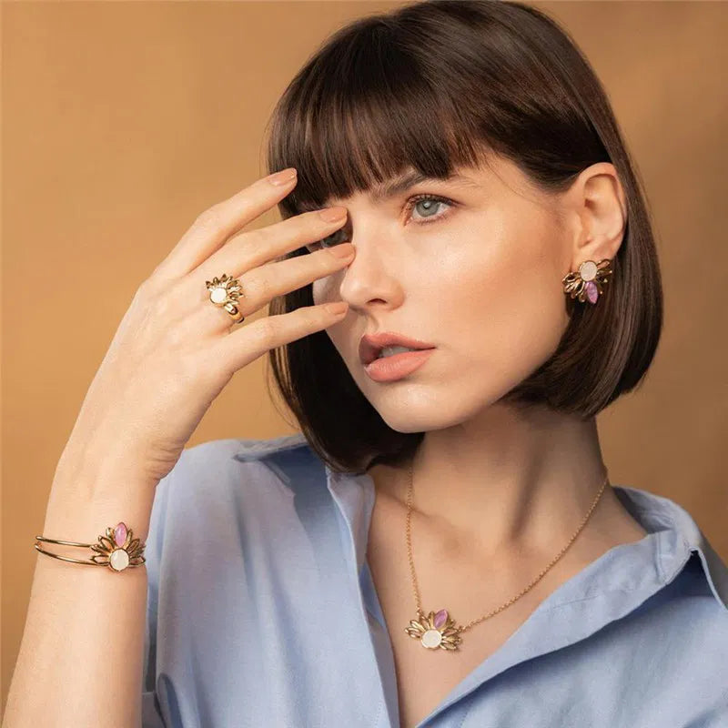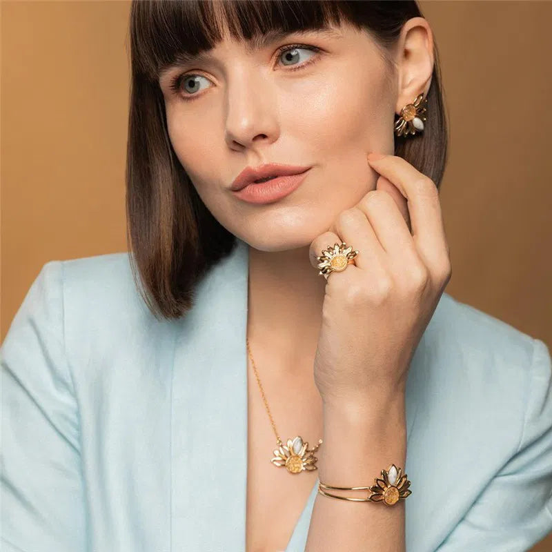 • Brinco dourado inspirado no girassol• Altura do brinco: 3,3 cm• Pedra cabochão em formato de navete: 6 x 12 mm• Detalhes em pedras naturais fragmentadas• Folheado a ouro• Peça hipoalergênica / sem níquel• Garantia de 1 ano no banho Inspirado na energia do sol, o Brinco Girassol é uma joia marcante que transmite luz, alegria e força. Seu design remete às pétalas do girassol, símbolo de vitalidade e renovação, criando uma peça cheia de significado e personalidade. O centro é formado por pedras naturais fragmentadas, que trazem textura e brilho orgânico, enquanto as pedras em formato de...