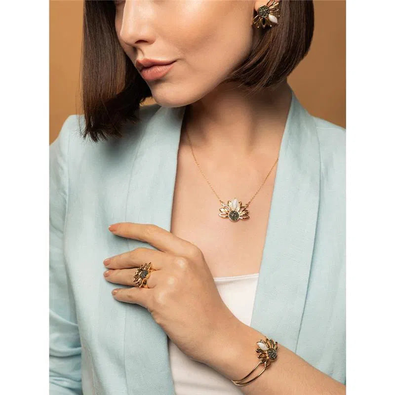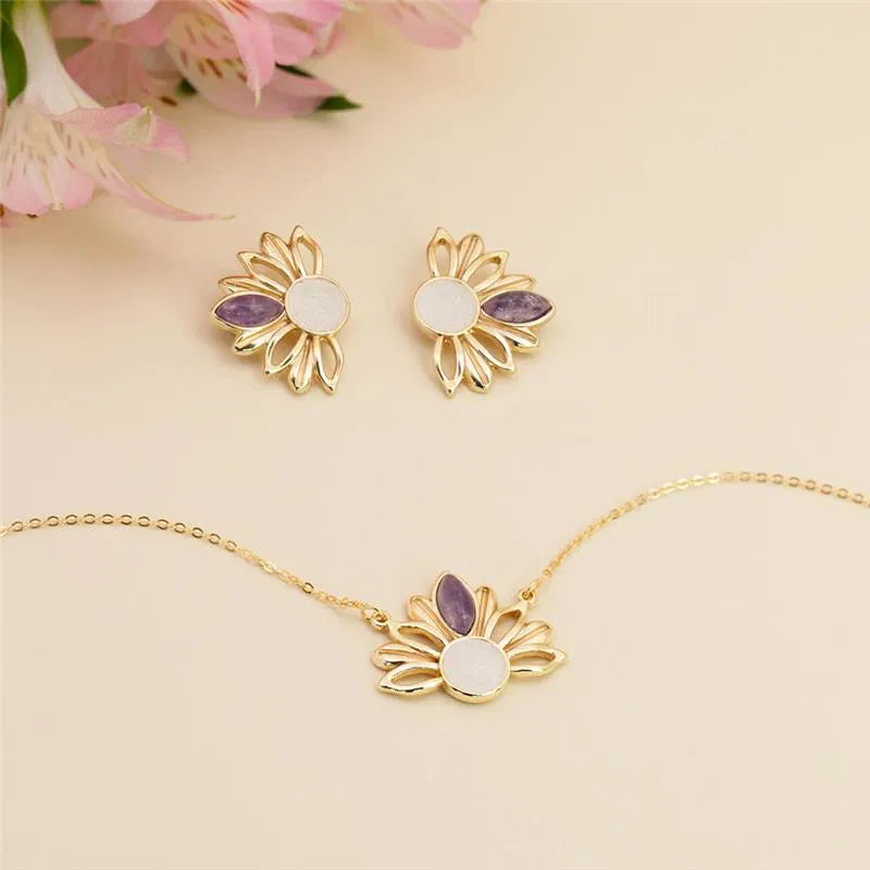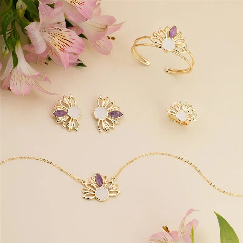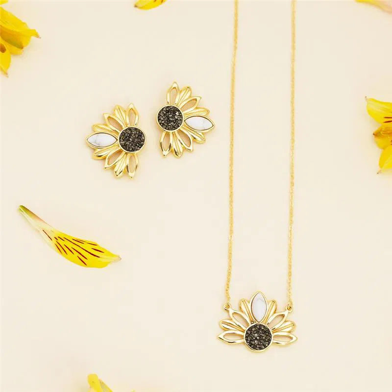 CONJUNTO GIRASSOL DOURADO COM DETALHES EM PEDRA NATURAL FRAGMENTADA