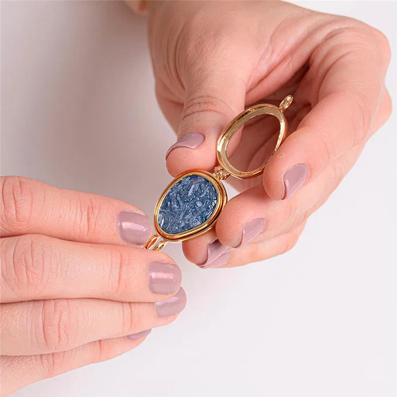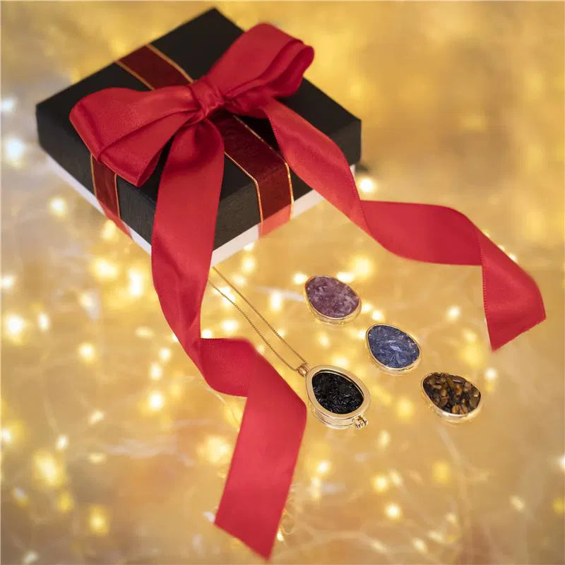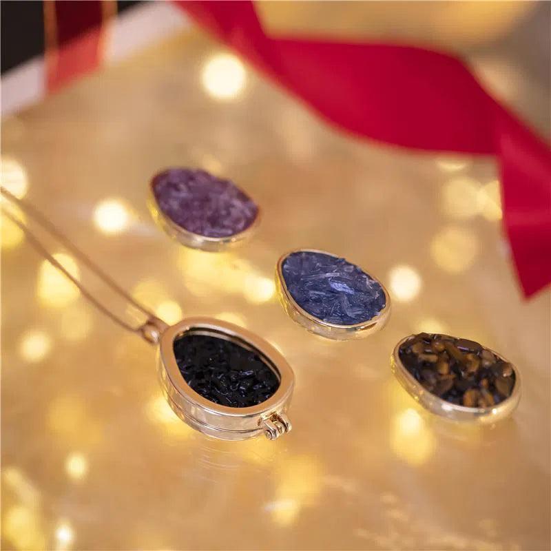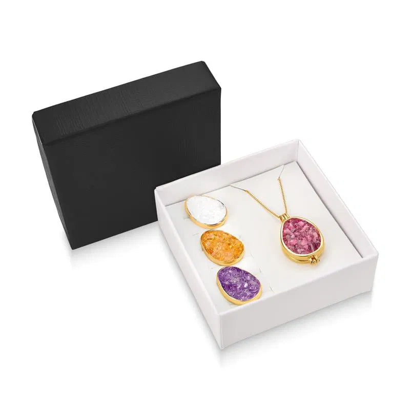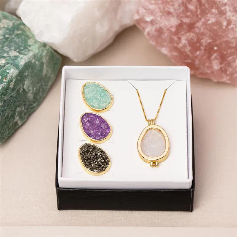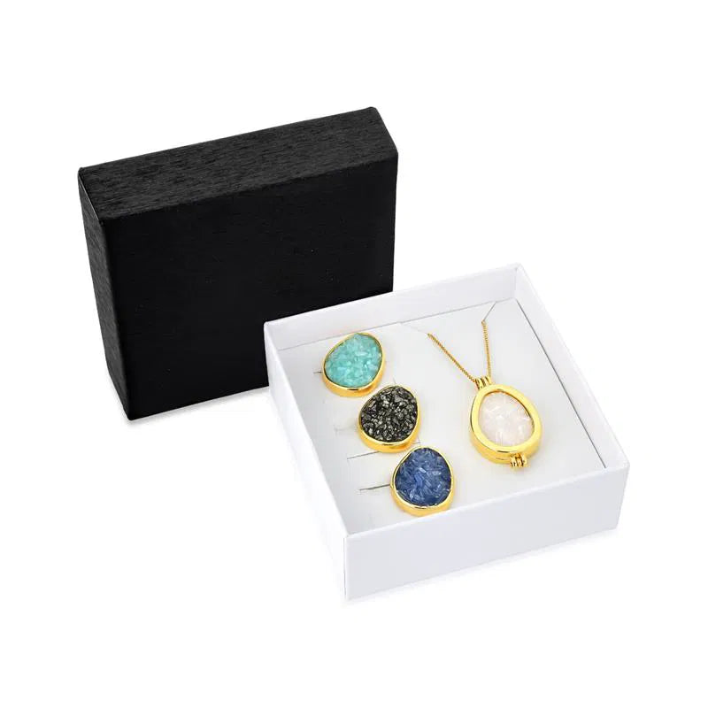 Cada combo é único, com pedras naturais que transformam seu relicário em uma nova peça a cada troca. Divirta-se criando composições cheias de estilo e energia positiva.