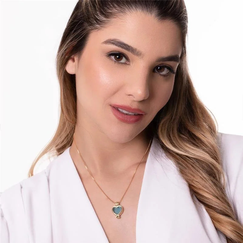 Pingente com pedra cabochão em formato de coração 12x13mm, simbolizando o amor puro e infinito entre mãe e filha.O detalhe adicional em forma de menina representa a presença e o carinho que os filhos trazem à vida, tornando esta joia um amuleto de...