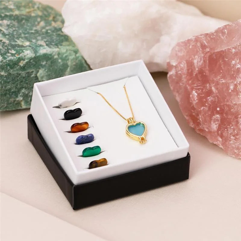 O combo relicário é composto por um relicário pingente, 7 pedras de chapa, em formato de coração 12x13mm. Ainda acompanha corrente Veneziana de 43cm + 7cm de extensor e caixa: um produto pronto para venda e para presentear. O pingente é em formato de coração, tornando-se uma peça apaixonante.Cada combo é único, e cada pedra permite transformar seu pingente em uma nova peça. Divirta-se criando combinações e diversos looks, levando com você a energia das pedras naturais. Pedras Variadas Possui um ano de garantia. Contém hipoalergênicos.