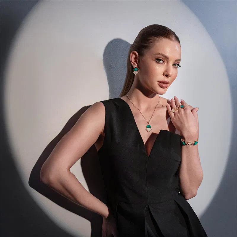 A esmeralda, em sua cor vibrante e profunda, simboliza renovação, equilíbrio e amor. Reflete a força da mulher em seus múltiplos papéis líder, mãe, criadora ou sonhadora.Cada joia é um tributo à eternidade do espírito feminino, onde o poder de existir, sentir e se reinventar nunca se apaga.Como a esmeralda, sua beleza é única e eterna.