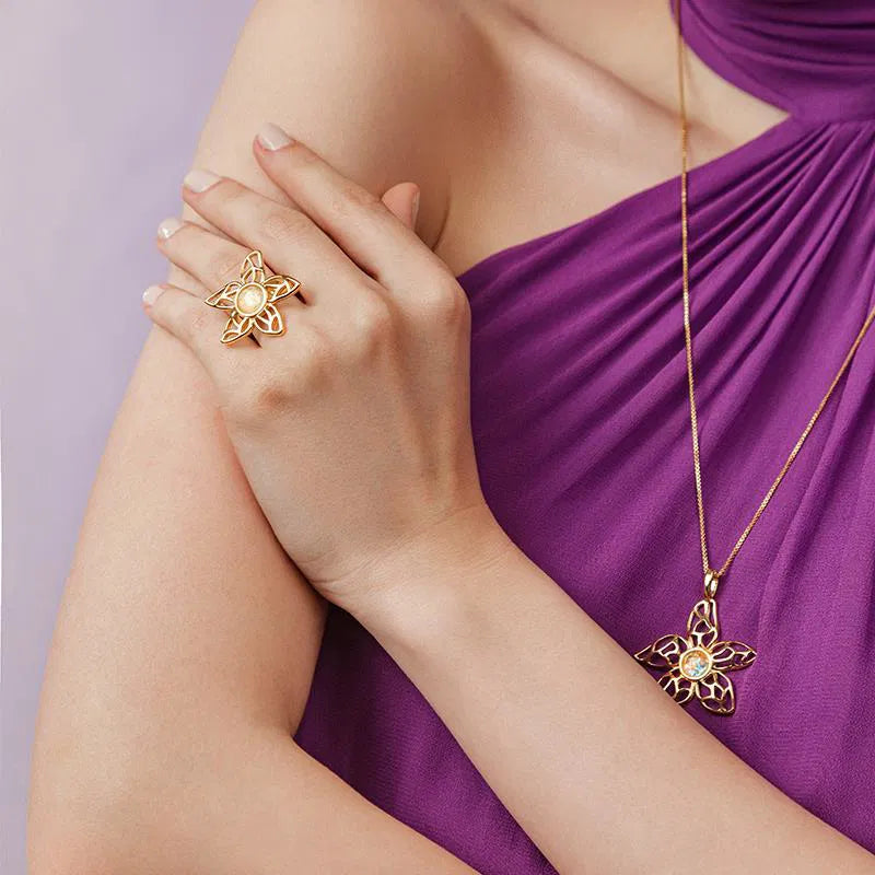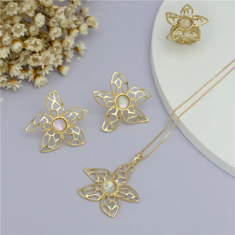CONJUNTO DOURADO FLOR COLEÇÃO GARDEN PEDRAS DO MAR
