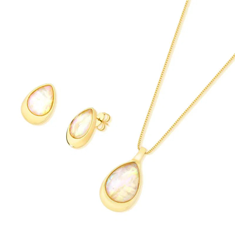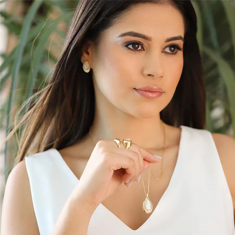 O Conjunto Pedras Conchas Facetadas traz o encanto do mar em cada detalhe. Folheado a ouro, ele combina pedras naturais de conchas sobrepostas por cristal lapidado, resultando em um brilho delicado e sofisticado. O design elegante e atemporal torna este conjunto perfeito para diversas ocasiões do dia a dia a momentos especiais,valorizando sua produção com um toque natural e exclusivo. 📿 Tamanho do colar: 43cm + 7cm de extensor💎 Tamanho da pedra do brinco: gota facetada 10x14mm💎 Tamanho da pedra do pingente: gota facetada 13x18mm📏 Altura do brinco: 2,0cm📏 Altura do pingente: 3,0cm✨ Peça folheada a ouro | Hipoalergênica |...