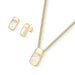 Altura do brinco: 2,3cm Altura do pingente: 3cm Tamanho da corrente: corrente snake achatada de 43cm + 7cm de extensor Tamanho das pedras: Pedra facetada retangular 9x15mm (brinco) Pedra facetada retangular 13x18mm (pingente) Folheado a ouro Peças hipoalergênicas / sem níquel Descrição:Cada peça do Conjunto Radiante foi desenhada para refletir o equilíbrio perfeito entre o clássico e o contemporâneo. O design combina volumes marcantes, formas geométricas e um toque de ousadia que transforma a joia em protagonista do look. As pedras facetadas, cuidadosamente selecionadas, revelam um brilho intenso e sofisticado, enquanto a corrente...