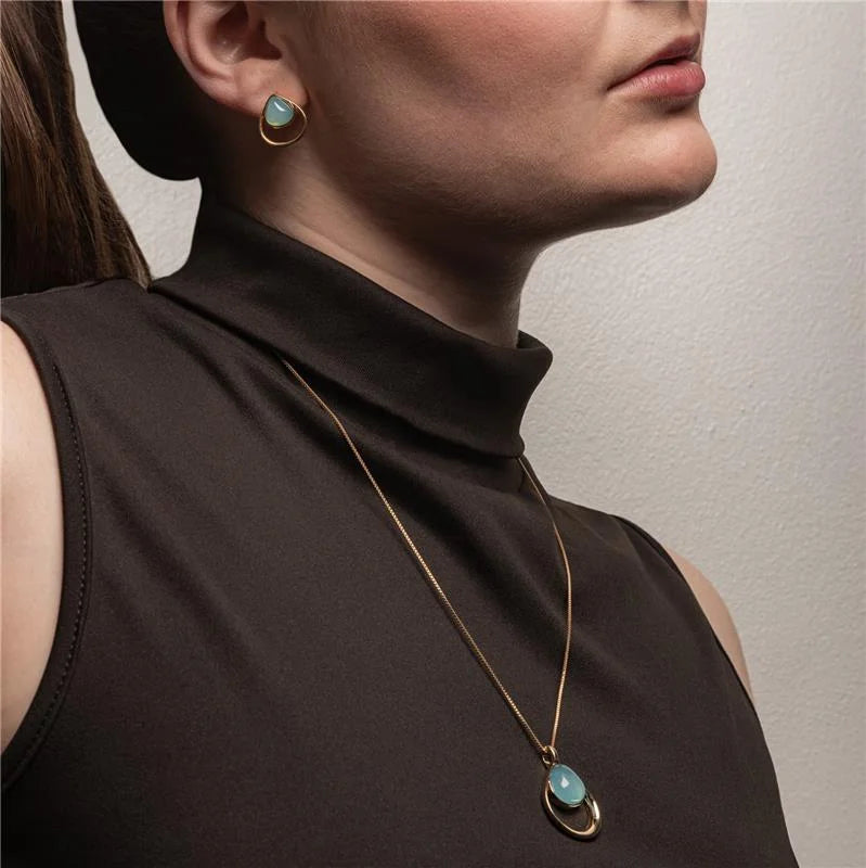 Detalhes do produto:• Altura total do brinco: 1,5cm• Altura total do pingente: 3cm• Tamanho da pedra do brinco: cabochão gota 8,65mm• Tamanho da pedra do pingente: cabochão gota 12x13mm• Corrente veneziana de 43cm + 7cm de extensor• Peças antialérgicas / hipoalergênicas• Garantia de 1 ano no banho