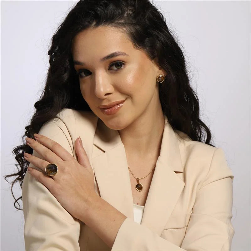 Da Coleção Lúmen / Fragmentos, o Conjunto Lúmen Aro Dourado é a união perfeita entre delicadeza e sofisticação natural.As pedras fragmentadas, com suas formas e cores únicas, tornam cada peça exclusiva, enquanto o aro dourado realça o brilho e o design artesanal característico da coleção.O...