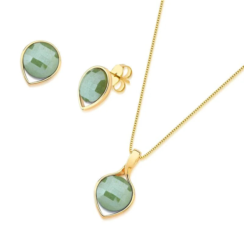 Coleção Facetada Perolada Com brilho suave e encantador, a Coleção Facetada Perolada celebra a elegância natural em cada detalhe.O conjunto é composto por brinco e pingente com pedra natural facetada, de efeito perolado e formato redondo de 12 mm, combinando delicadeza e sofisticação.Acompanha corrente veneziana de 43 cm + 7 cm de extensor, perfeita para realçar o brilho sutil das pedras. Detalhes do produto:• Coleção Facetada Perolada• Folheado a ouro• Pedra natural facetada com efeito perolado – formato redondo 12 mm com detalhe dourado em formato de gota• Altura total do brinco: 1,8 cm• Altura total do pingente: 2,8 cm•...