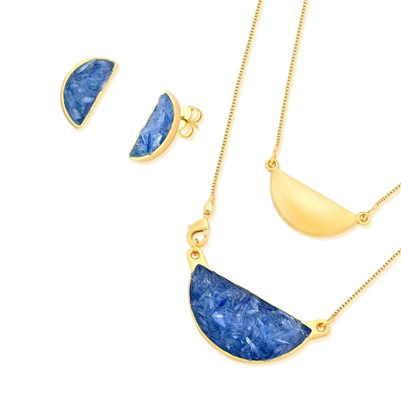 Da Coleção Lúmen / Fragmentos, o Conjunto Lúmen Aro Dourado é a união perfeita entre delicadeza e sofisticação natural.As pedras fragmentadas, com suas formas e cores únicas, tornam cada peça exclusiva, enquanto o aro dourado realça o brilho e o design artesanal característico da coleção.O...
