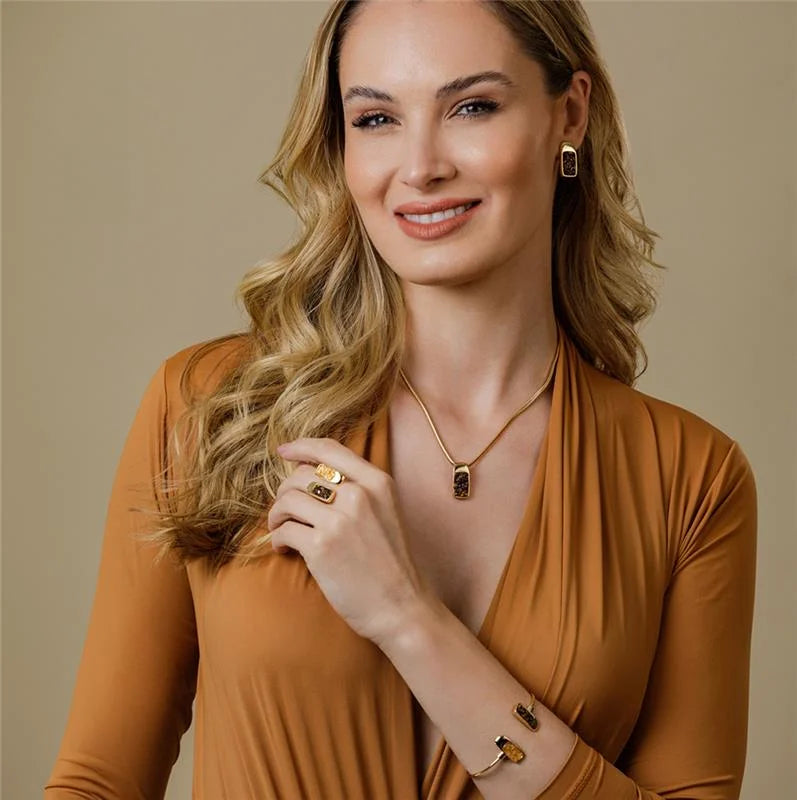 Da Coleção Lúmen / Fragmentos, o Conjunto Lúmen Aro Dourado é a união perfeita entre delicadeza e sofisticação natural.As pedras fragmentadas, com suas formas e cores únicas, tornam cada peça exclusiva, enquanto o aro dourado realça o brilho e o design artesanal característico da coleção.O...