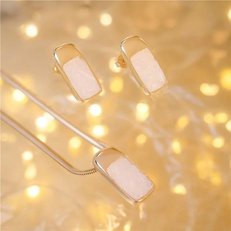 Da Coleção Lúmen/Fragmentos, este conjunto traduz exclusividade e delicadeza. Folheado a ouro, apresenta brinco e pingente em perfeita harmonia, ambos com 2,3 cm, acompanhados de colar de 43 cm + 7 cm de extensor, que garante versatilidade no uso. As pedras naturais fragmentadas, em suas diferentes cores e formas, fazem de cada peça única. O brilho do detalhe dourado em contraste com as pedras ressalta o design artesanal e sofisticado, criando uma joia autêntica e atemporal. Detalhes do produto: Coleção: Lúmen / Fragmentos Folheado a ouro Pedras naturais fragmentadas Altura do brinco: 2,3 cm Altura do pingente: 2,3 cm...