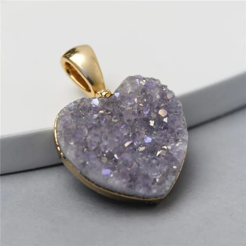 Pingente avulso (sem corrente) com pedra natural em formato de coração, composta por drusa bruta que traz brilho intenso e textura única. Por serem naturais, cada pedra possui sua própria formação, tornando cada peça exclusiva e cheia de personalidade.