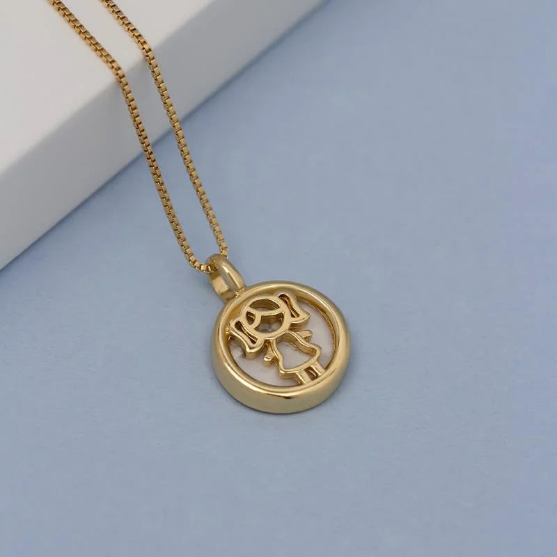 Com pedra natural chapa redonda, o Pingente Filhos Menina Dourado representa o amor incondicional e a doçura que os filhos trazem à vida.O metal se transforma delicadamente na forma de uma menina, simbolizando amor, proteção e a presença constante da filha...