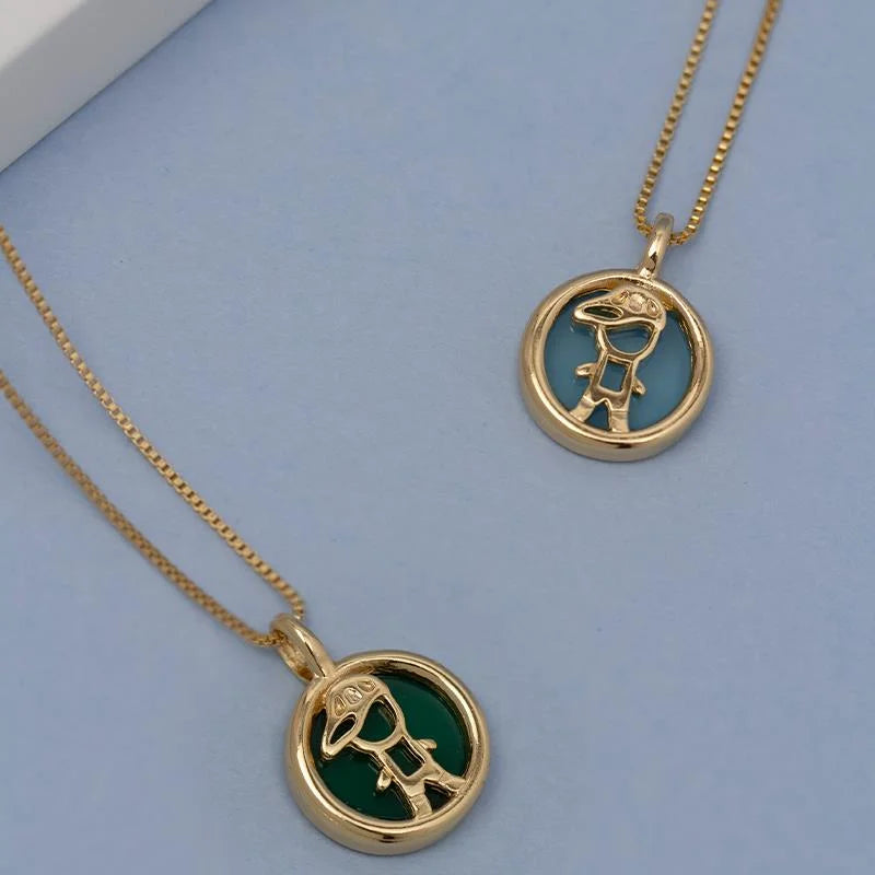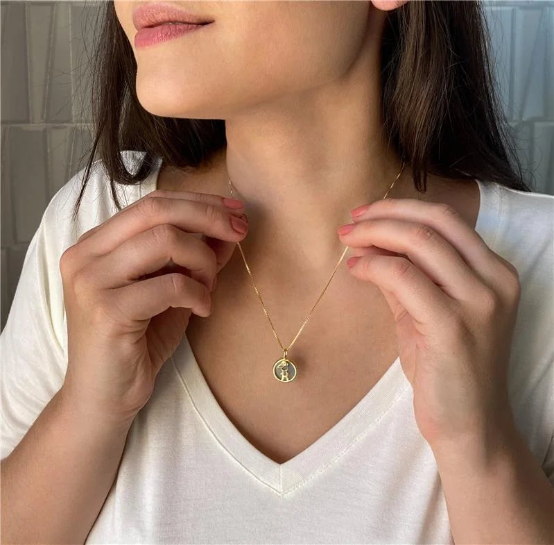 Detalhes do produto:• Altura total do pingente: 2cm• Tamanho da pedra: 12mm• Corrente veneziana de 43cm + 7cm de extensor• Coleção: Filhos• Peça hipoalergênica e com garantia de 1 ano no banho