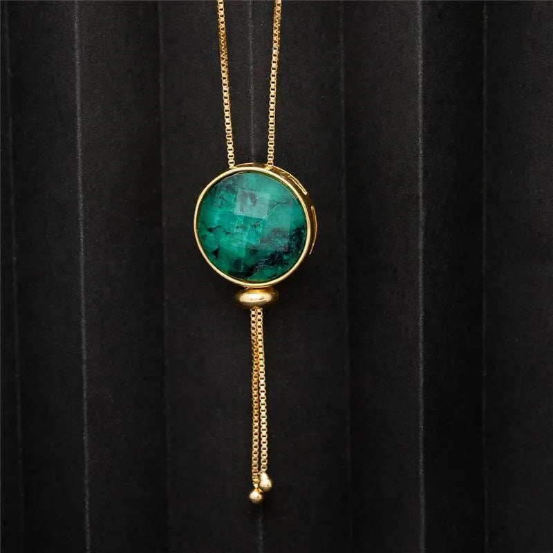 Elegante e sofisticado, este pingente/colar gravatinha apresenta pedra redonda em esmeralda, trazendo charme e exclusividade a qualquer look. Acompanha corrente veneziana 1.0 estilo gravatinha de 85 cm, que pode ser usada longa ou mais curta, permitindo combinações criativas e versáteis.