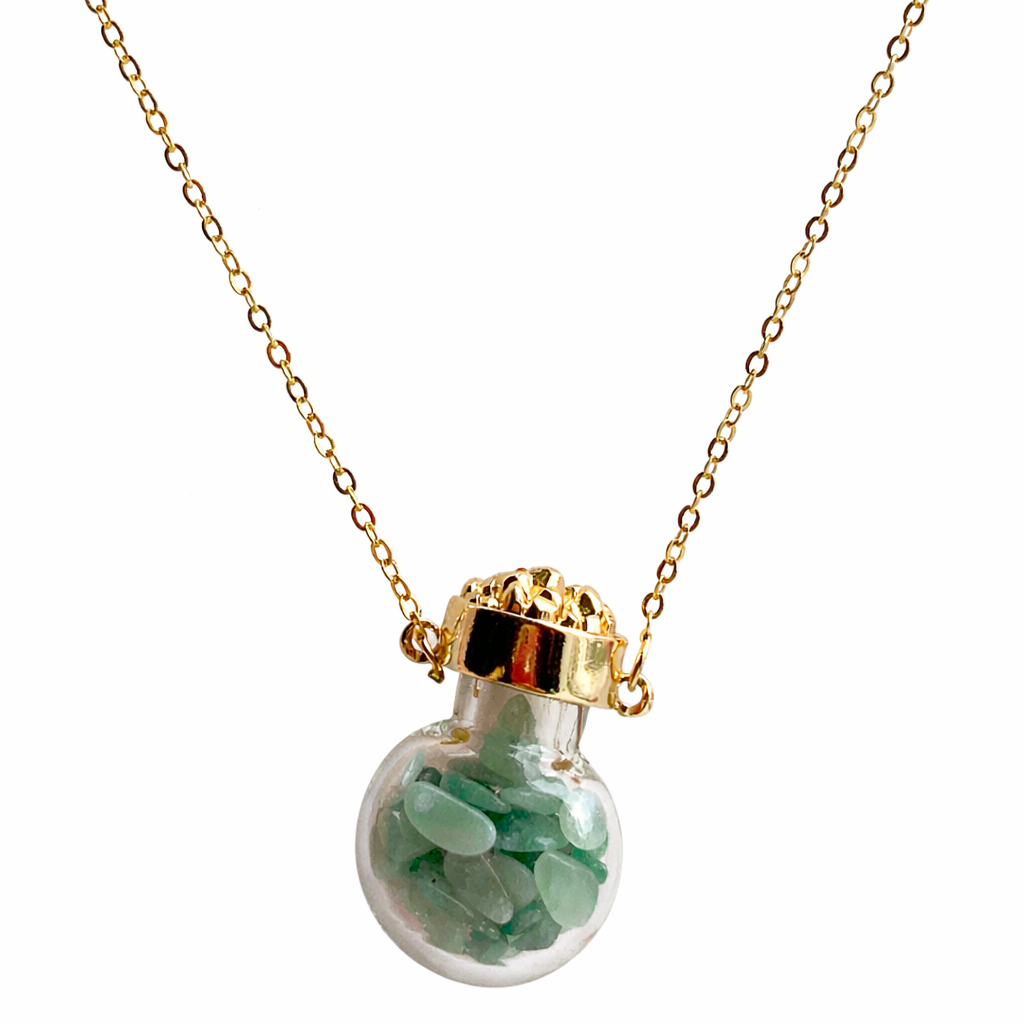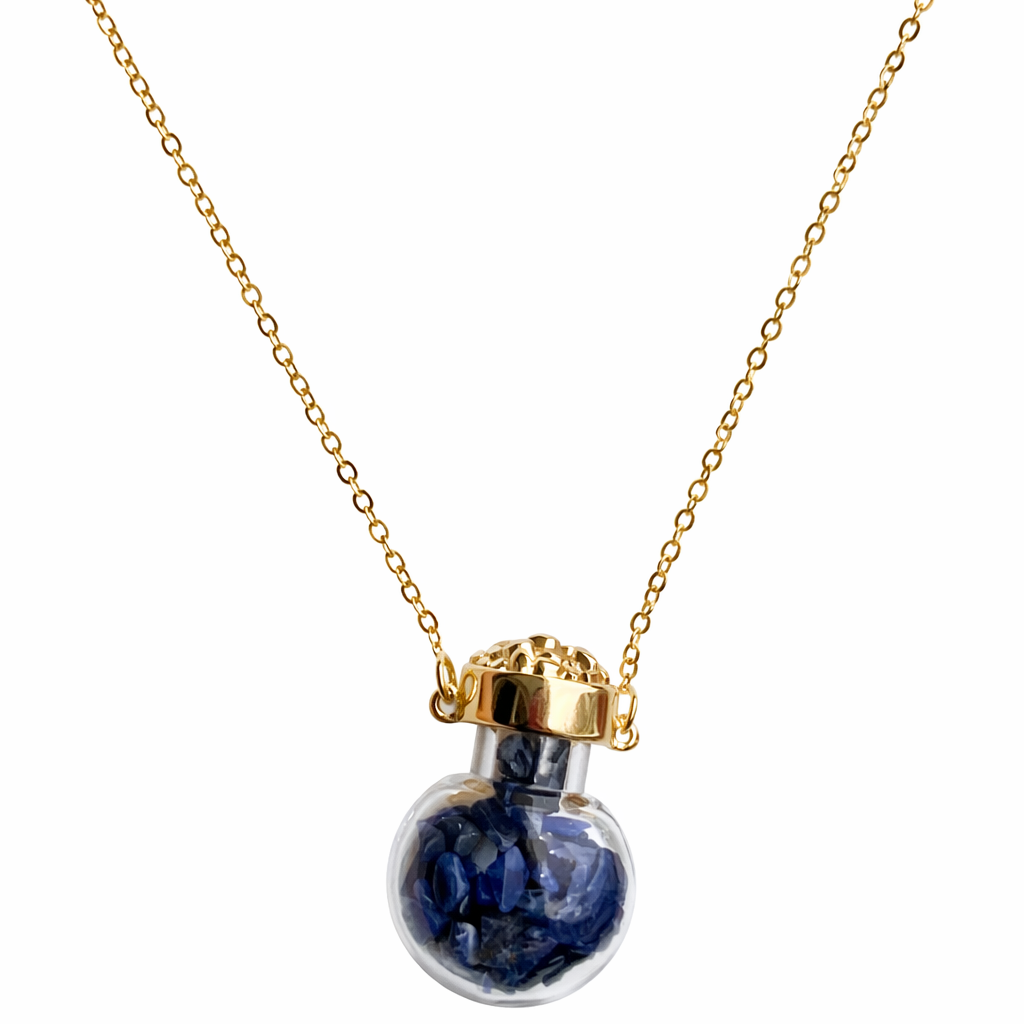 Este pingente delicado combina estilo e espiritualidade em uma peça única. Folheado a ouro, apresenta uma garrafinha de vidro contendo pequenas cascalhos de pedras naturais, tornando cada peça exclusiva. Acompanha corrente Cartier estilo borboleta de 60 cm, com extensor de 7 cm, garantindo ajuste perfeito e conforto no uso. Detalhes do produto: Folheado a ouro pingente em vidro com cascalhos de pedras naturais Corrente Cartier estilo borboleta: 60 cm + extensor de 7 cm Altura do local: 3,0 cm Garantia de 1 ano apenas no banho da peça Pingente de vidro não possui garantia As pedras podem apresentar pequenas variações...