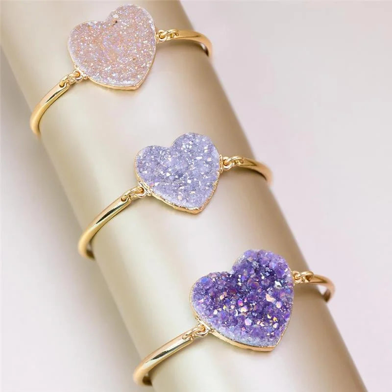 Da Coleção Raridade, a Pulseira Coração Dourada com Pedra Geodo Natural é uma celebração da beleza única da natureza.Cada pedra em formato de coração é um geodo natural com brilho e textura exclusivos, tornando cada pulseira uma joia singular e autêntica.Com seu design delicado e toque dourado sofisticado, é uma peça que traduz amor, energia e exclusividade.