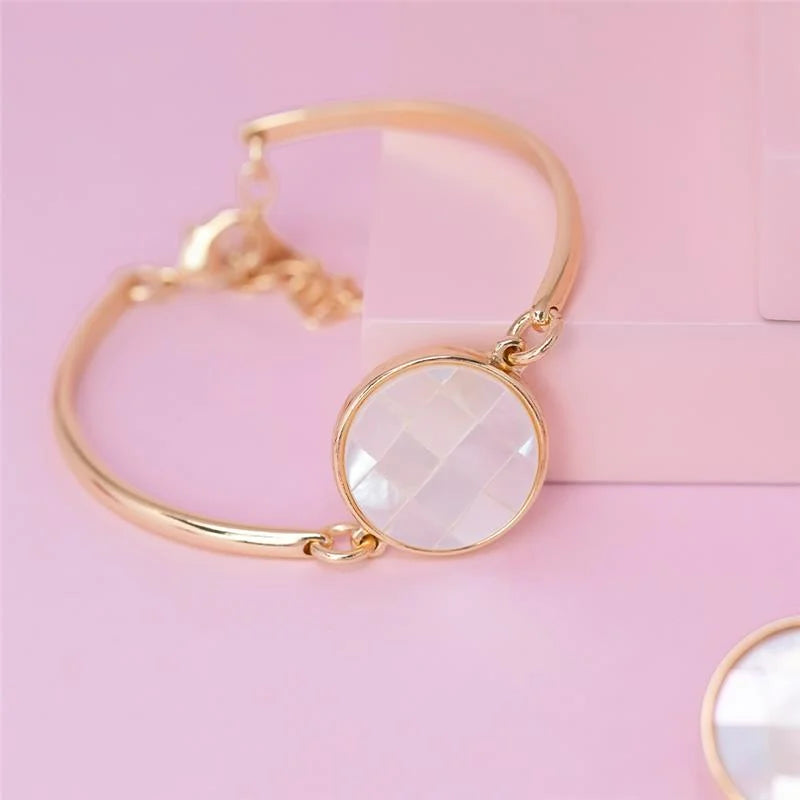 PULSEIRA ESTILO BRACELETE COM PEDRA REDONDA EM MADREPÉROLA MOSAICO– Hipoalergênico, 1 Ano de Garantia.
